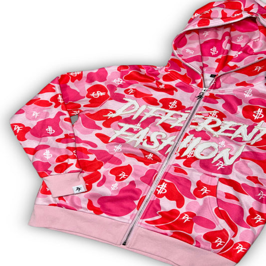 Sold outDF Pink X Red Camo Full Zip Jacket